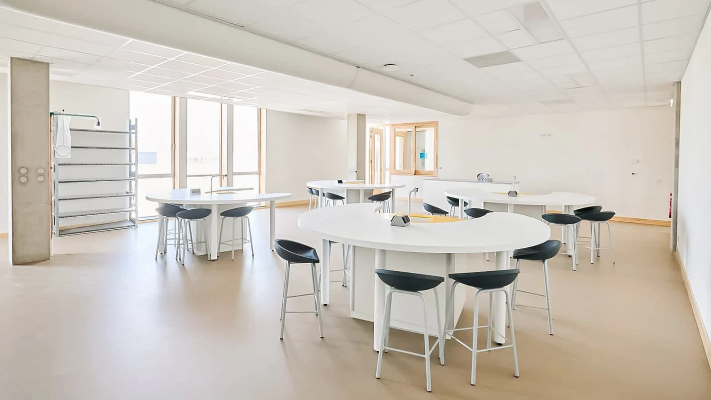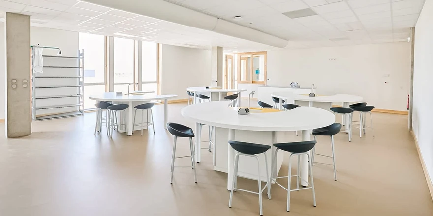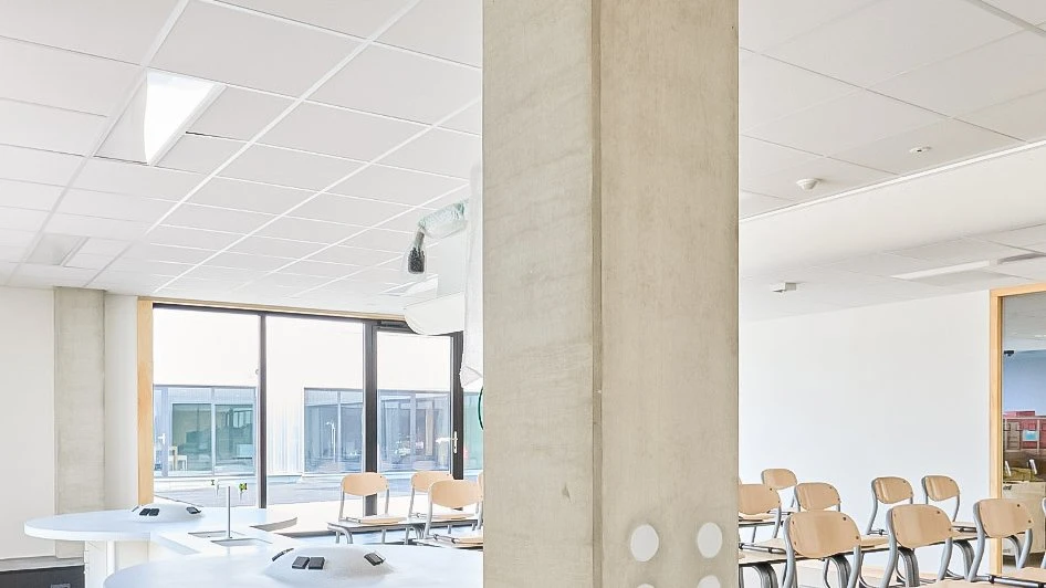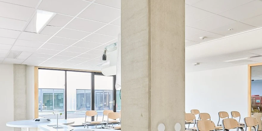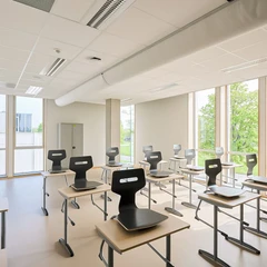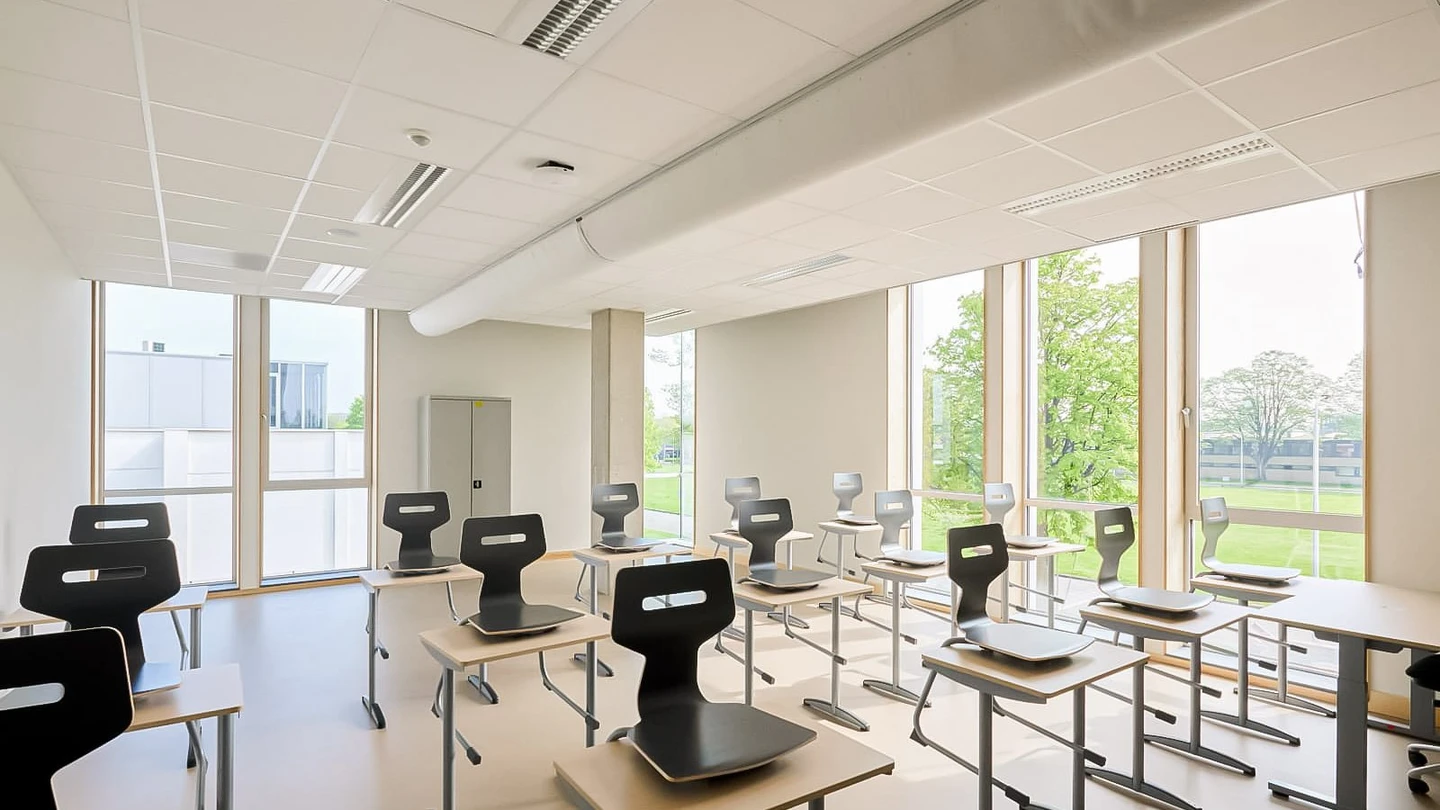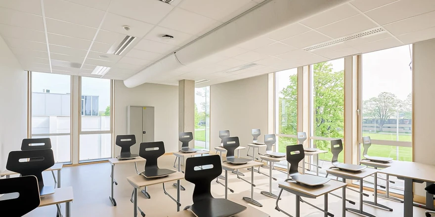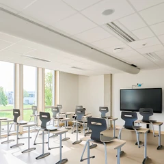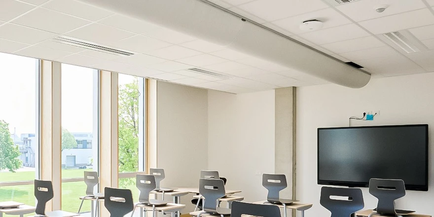 Two perforation variants were used for air distribution, fine DFC Comfort for classrooms, where maximum comfort without any drafts is essential, and DFC Induction for the gym, ensuring efficient air mixing even in larger and dynamically used spaces. As a result, a uniform and stable indoor climate is achieved throughout the building, supporting both student concentration and athletic performance.