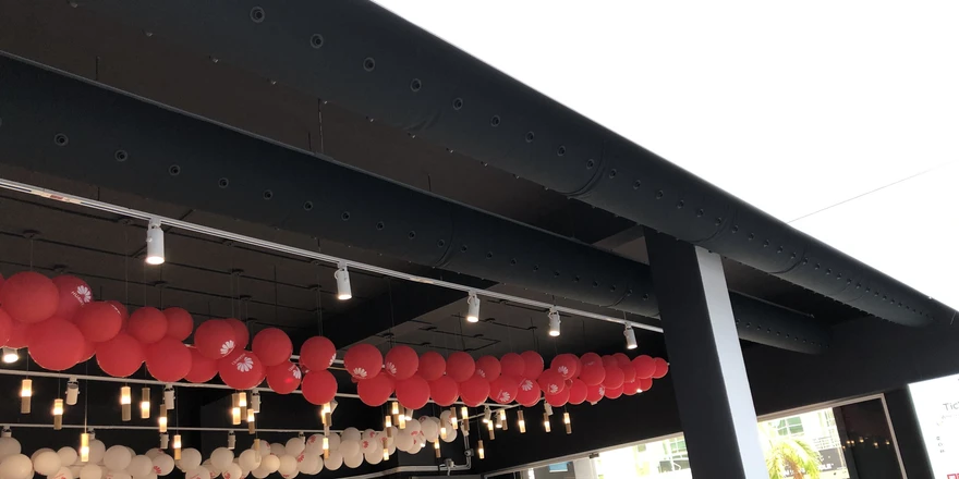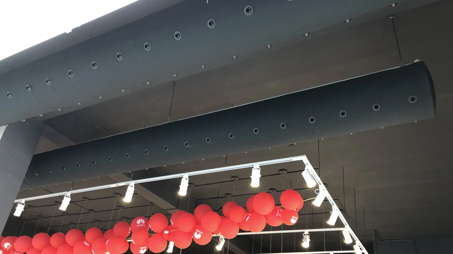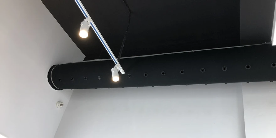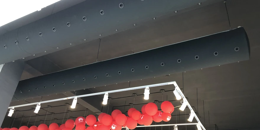 In electronics stores, it is crucial to maintain a stable temperature without fluctuations or drafts that could be uncomfortable for customers. The textile system with nozzles ensures efficient cooling of the space, even airflow, and supports energy-efficient operation. The elegant black design further enhances the modern character of the interior.
