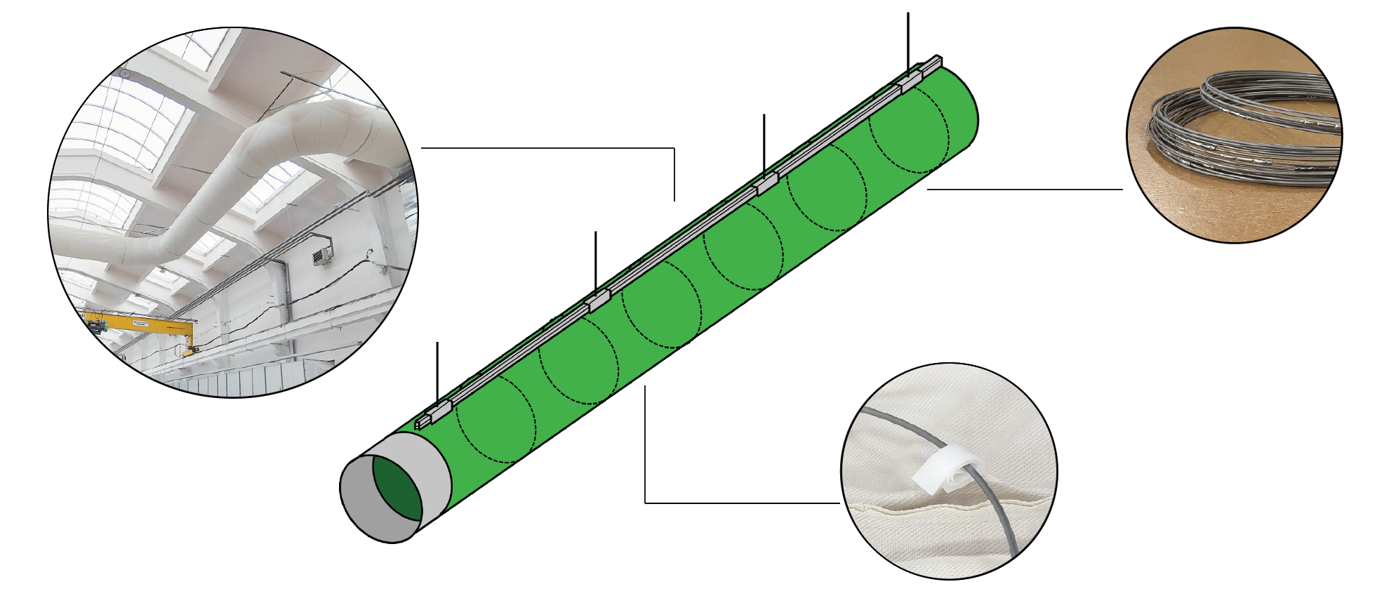 Díky tomu se snižuje celkové namáhání textilního potrubí a výrazně se prodlužuje jeho životnost. Zároveň udržují vyústky ve stálém tvaru i ve chvílích, kdy ventilátor neběží, takže systém působí čistě a esteticky za všech okolností.