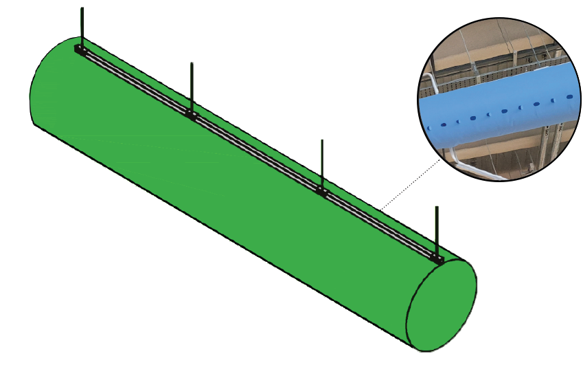 Vnitřní kruhy představují praktické a prémiové řešení, které udržuje textilní vyústky ve stabilním a estetickém tvaru i v době, kdy systém není v provozu. Díky nim se potrubí nesvěšuje, zůstává rovné a působí čistým dojmem za všech okolností.