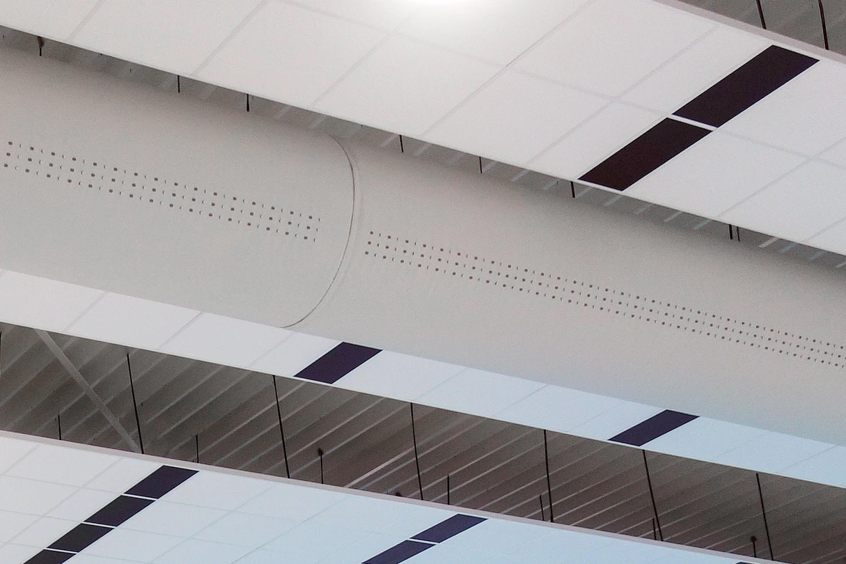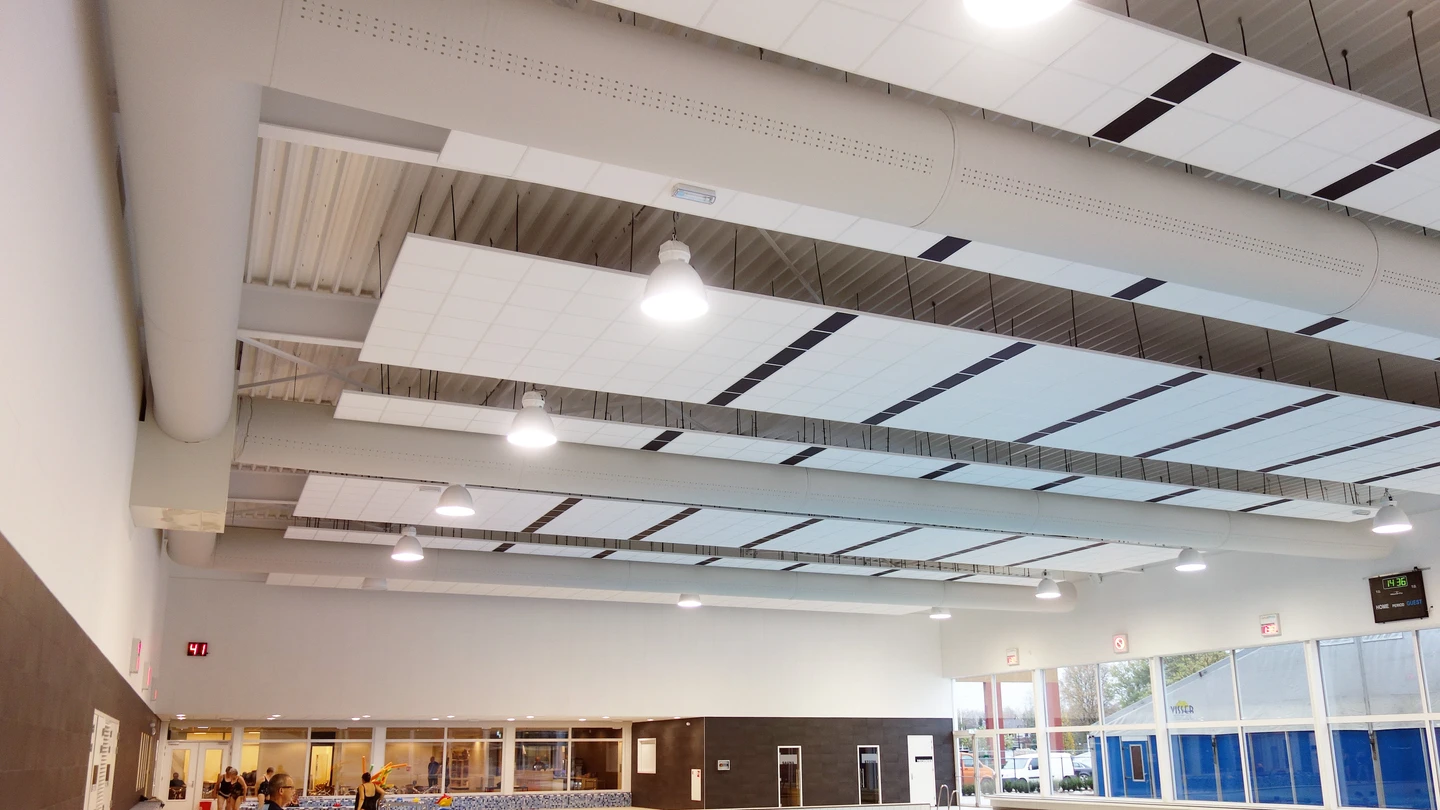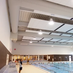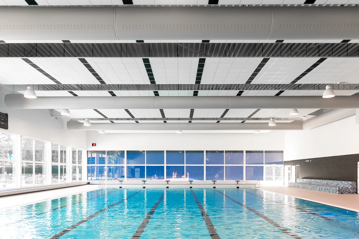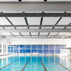Textilní vyústky Euro Air s DFC perforací ve třech řadách zajišťují rovnoměrnou distribuci vzduchu po celé ploše bazénu bez průvanu a bez mrtvých zón, kde by se hromadila vlhkost. Na rozdíl od klasických plechových rozvodů jsou navíc plně odolné vůči korozi způsobené chlorem, takže nevznikají problémy s orosenými okny ani se studenými zónami, které by návštěvníky odrazovaly od pobytu u vody.