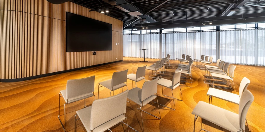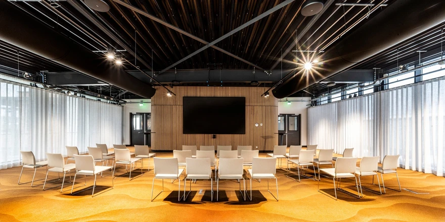 Textilní vyústky Euro Air z materiálu TCS v propustnosti nejčastěji 325 m³/m²/h jsou dodány v černé barvě RAL 9005, která přirozeně ladí s moderním charakterem kancelářského interiéru. Vzduch je rovnoměrně distribuován po celém pracovním prostoru bez průvanu a bez teplotních nerovnoměrností, zaměstnanci se tak mohou soustředit na svou práci ve svěžím a komfortním klimatu po celý pracovní den.